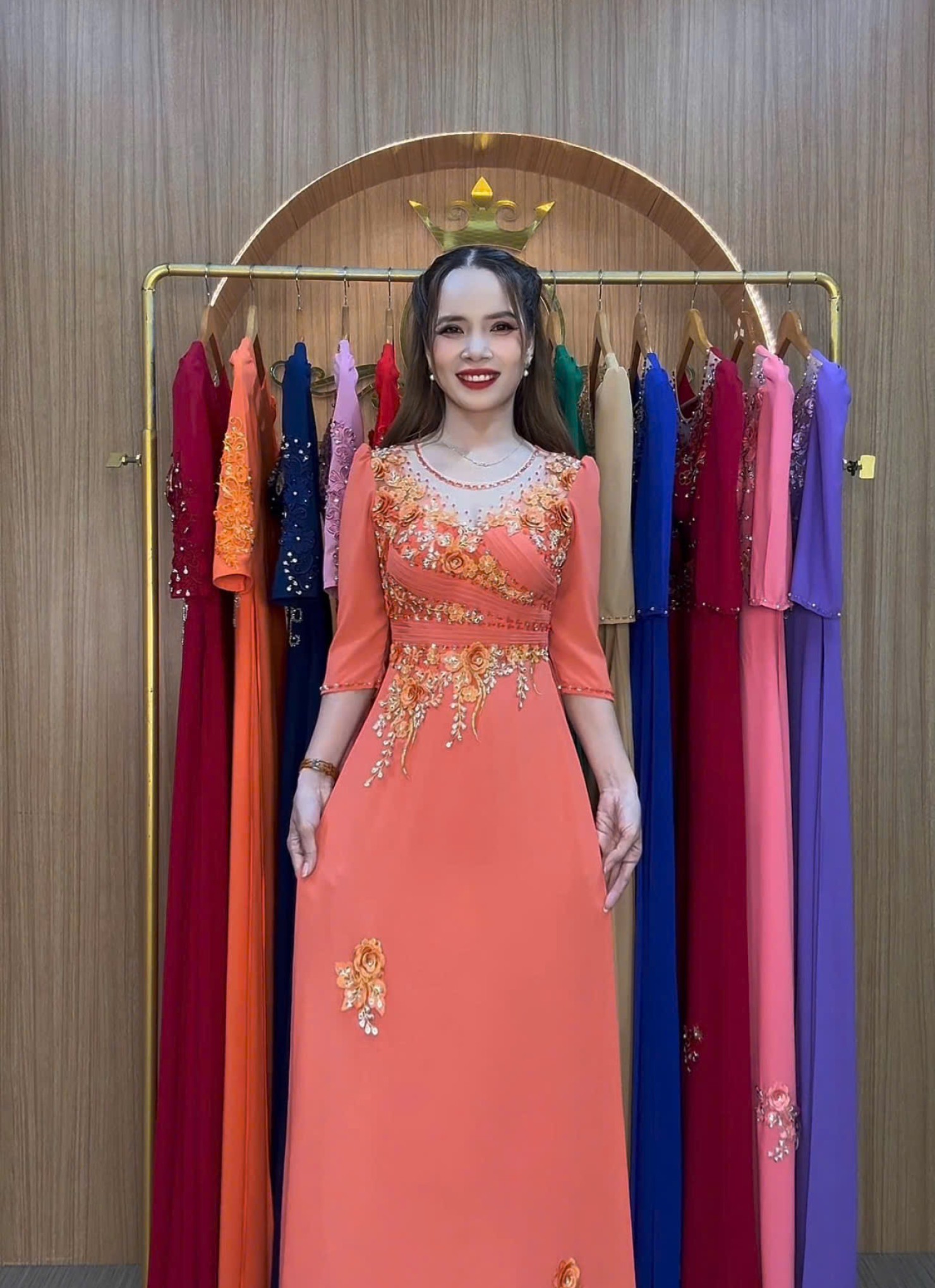 ÁO DÀI DẠ HỘI CAM SỮA - DH1068