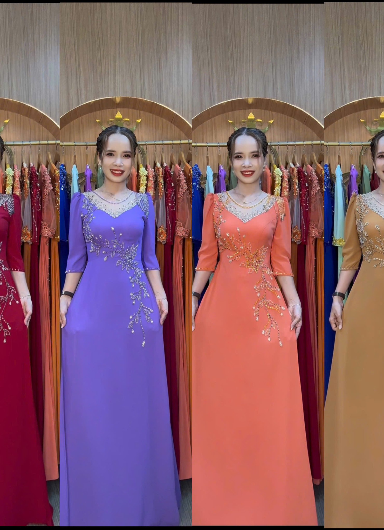 + Với phong cách thiết kế áo dài 2 tà, sẽ là sự lựa chọn hoàn hảo cho các quý cô thướt tha, kiêu sa trong các buổi tiệc, tự tin che đi khuyết điểm